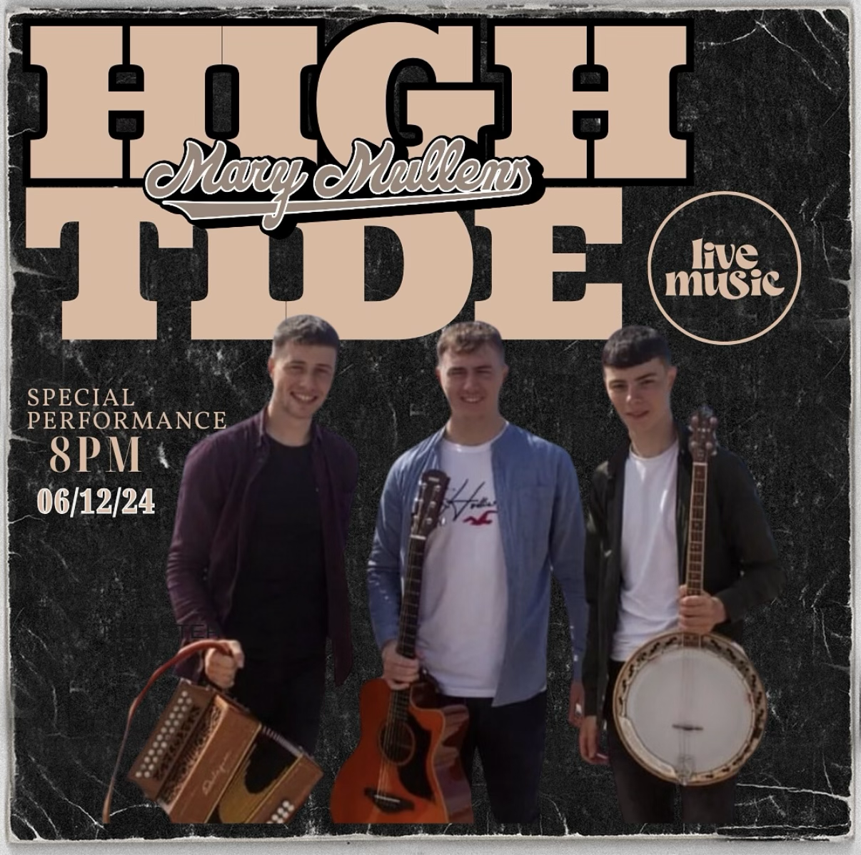 High Tide are a three-piece bringing a fresh, high-energy take on trad and acoustic favourites. Tight, lively, and built for a packed room, they know how to get a crowd going early and keep it there all night. This one won’t stay quiet for long.